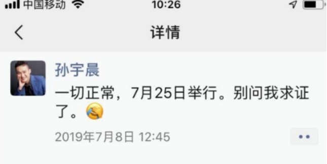 為此,7月8日孫宇晨還在社交媒體上發過消息,表示午餐約會一切正常,將會在25日舉行。