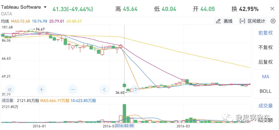 兩家都發布了遠低於市場預期的指引。比如Tableau預計2016年第一季度營收在1.6至1.65億美金,全年營收在8.3至8.5億美金,市場預期分別是1.79億和8.7億美金。並且,每股淨收益(EPS)公司預計仍將虧損0.08到0.12美金,全年虧約0.2到0.35美金,市場之前樂觀地預計能實現盈利0.06美金,全年達到0.62美金。與盈利預期的巨大落差是壓垮股價的最后一根稻草。