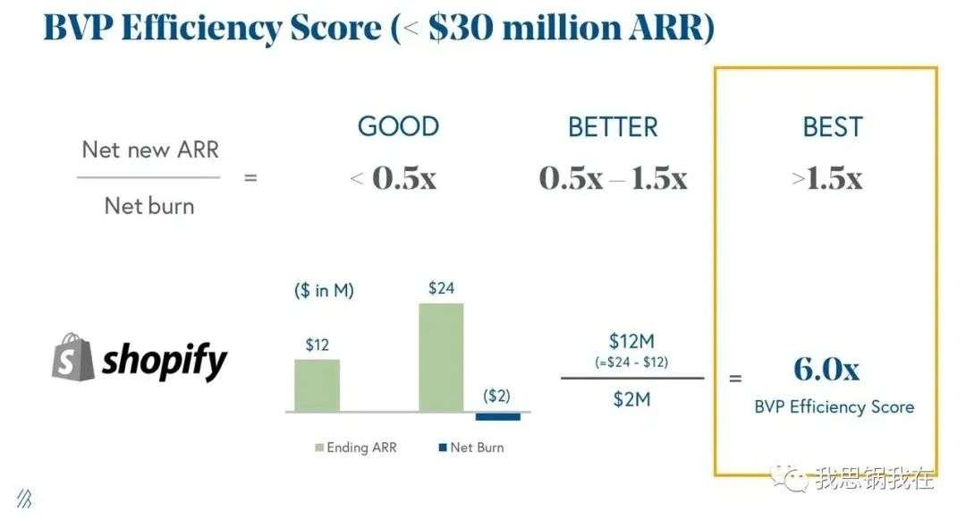 最后,BVP用「Efficiency Score(投入產出比值)」來判斷公司的支出效率,計算方法為:淨新增ARR/淨支出。