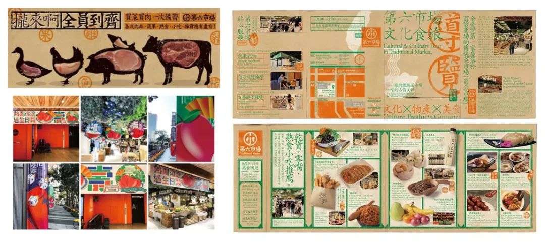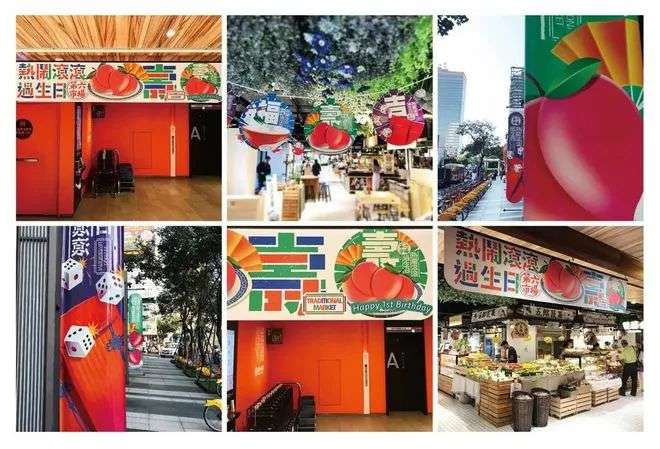 自開業起,商場就邀請臺灣設計師黃中星定製了開業海報,並在此后的各個節點延續一以貫之的風格,在周年慶、宣傳冊、菜單設計等方面展示了自有的匠心誠意。從「攏來啊(靠過來),全員到齊」到「過生日,熱鬧滾滾」,再到「好事發生」,幽默的文字搭配特定畫風,簡潔質朴、亮點突出、一目瞭然,其呈現出的獨到審美,為第六市場本身增色不少。