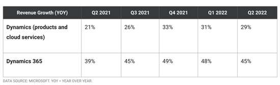微軟對Salesforce形成了兩面夾擊的威脅。一面是Azure雲基礎設施在IaaS層帶PaaS/SaaS,另一面是「Teams+Office365」的協同辦公生態帶PaaS/SaaS。2019年微軟生產力和業務流程的To B板塊收入僅為26億美元,但2021年已增長至122億美元。近一年,微軟Dynamics365收入增速均超過45%,高於Salesforce的20%。