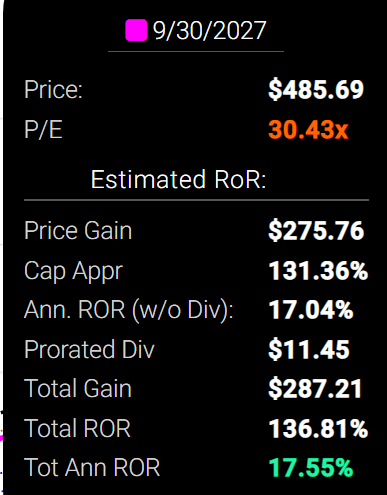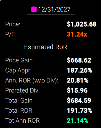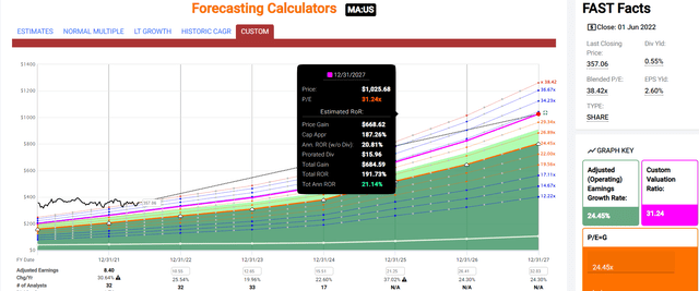 如果 MA 按預期增長到 2027 年,它可以提供 21% 的年回報率或接近 200%。