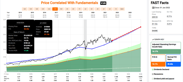 如果 Visa 按預期增長並保持歷史公允價值,它可以在未來三年內實現與巴菲特類似的 17% 的年回報率。
