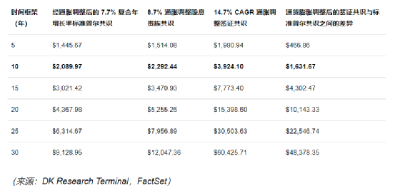 通脹調整后的共識回報潛力:1,000 美元初始投資