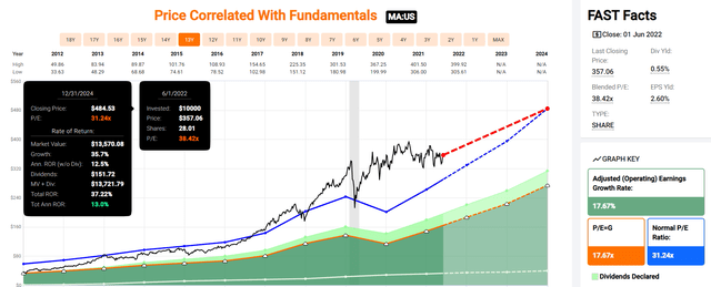 如果 MA 按預期增長並保持歷史公允價值,它可以在未來三年內提供非常有吸引力的 13% 年回報率。