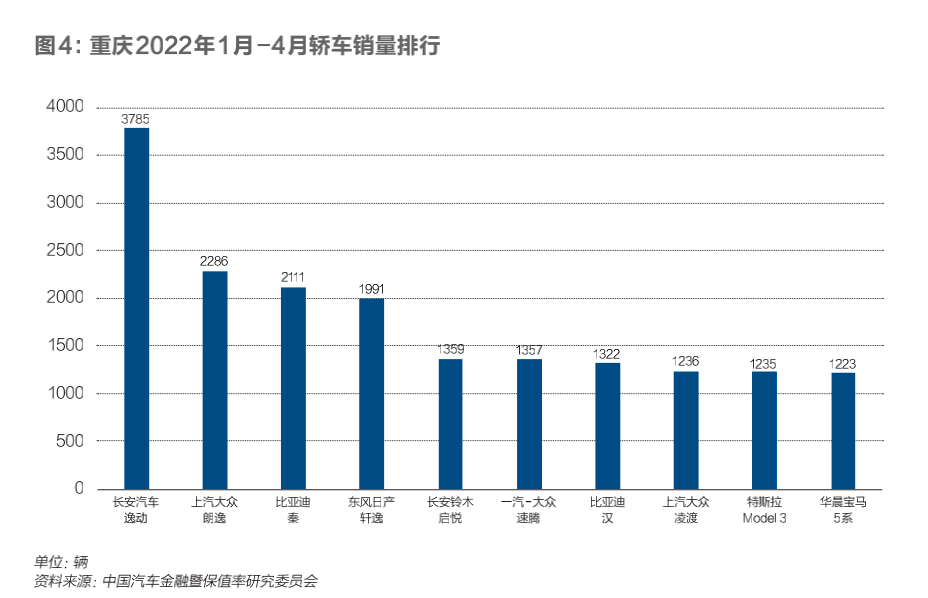 和SUV市場的統治級表現相比,長安自主序列產品在重慶轎車市場的表現稍遜一籌。除了長安逸動以3785輛佔據頭名,再無一款長安系自主轎車上榜。