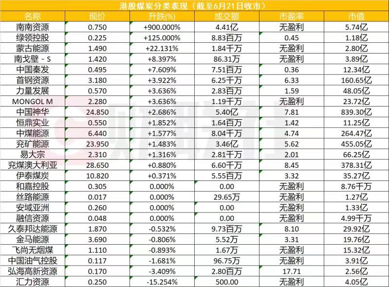 此外,港股煤炭行業集體走強,綠領控股漲125%,蒙古能源漲超20%,中國秦發漲、南戈壁漲近8%,蒙古焦煤漲、首鋼資源、中國神華漲近3%。