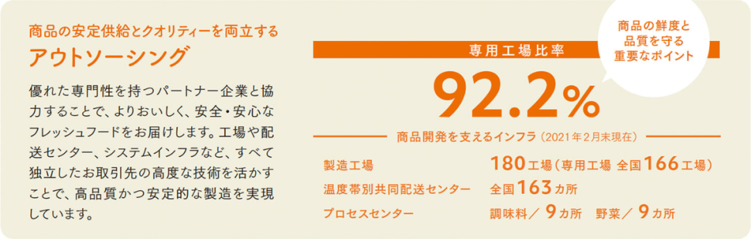 此外,由於共享生產商難以規避下游品牌產品間的交叉污染,NDF能夠在食材採購和品質管理上執行統一標準,確保生產衞生安全。截至2021年2月,公司在日本已經擁有180家NDF體系內的專有生產廠商,在所有供應商中佔比92.2%。
