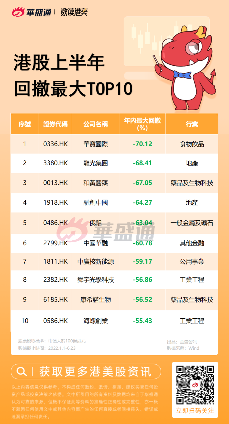 4、上半年港股回撤最大TOP10