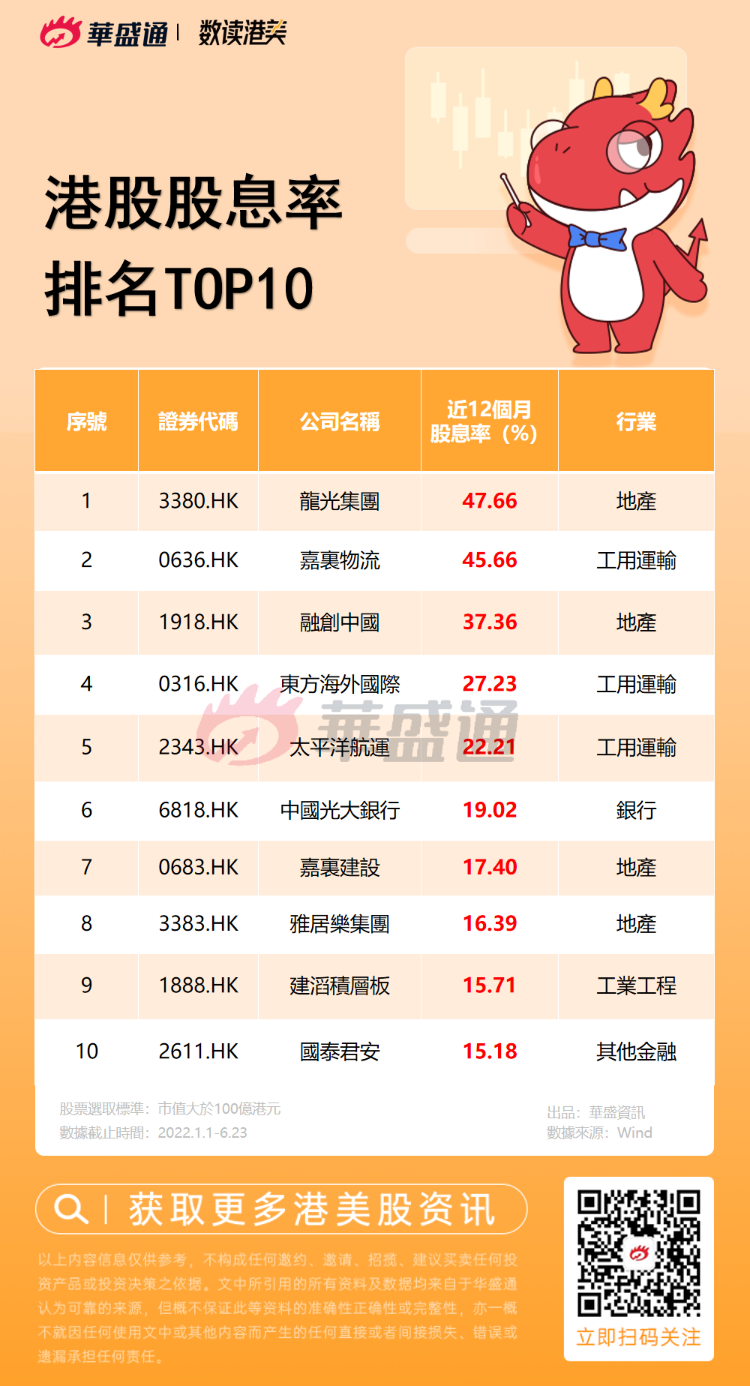 5、上半年港股高股息股TOP10
