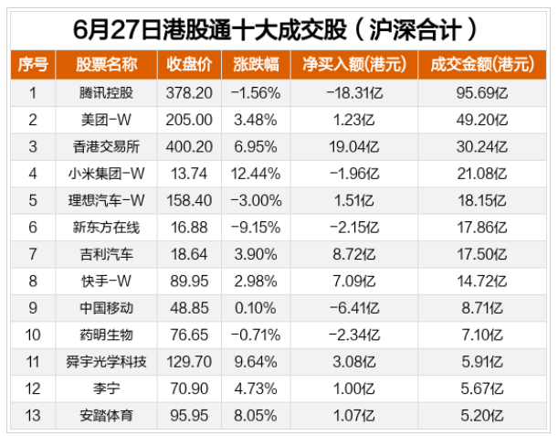而從南向資金動向看,今天的反應並不「平靜」。6月27日,南向資金當日成交淨買額為42.64億港元。但交易所公佈的港股通十大成交股顯示,今日南向資金淨賣出騰訊控股18.31億港元。