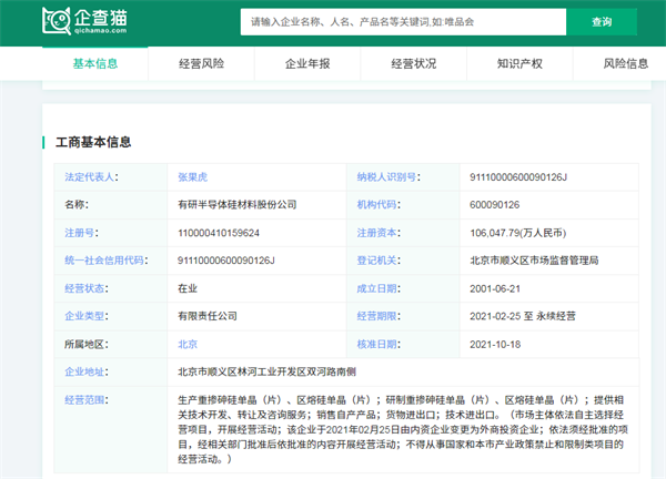 據公司官網資料顯示,有研硅是高新技術企業,擁有國家企業技術中心、國家技術創新示範企業、集成電路關鍵材料國家工程研究中心(原半導體材料國家工程研究中心)等多項行業資質。有研硅前身為有研科技集團有限公司(原北京有色金屬研究總院)401室,自上世紀50年代開始硅材料研究,歷經半個多世紀的時間,積累了豐富的硅材料研發核心技術及生產經驗,同時培養造就了一批科技創新和經營管理人才。