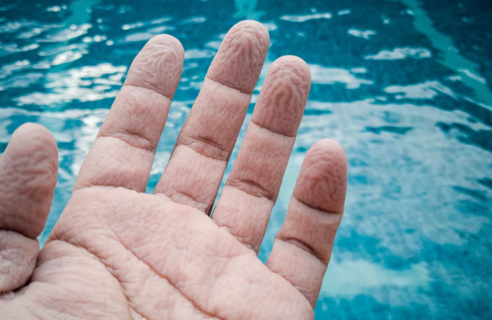 在浴缸里多泡一會,或者在泳池里多遊幾圈,你的手指就會發生「劇變」。如果手指上的類脊狀表皮有輕微螺紋,這些螺紋就會吸飽水分,呈西梅乾狀,十分醜陋。