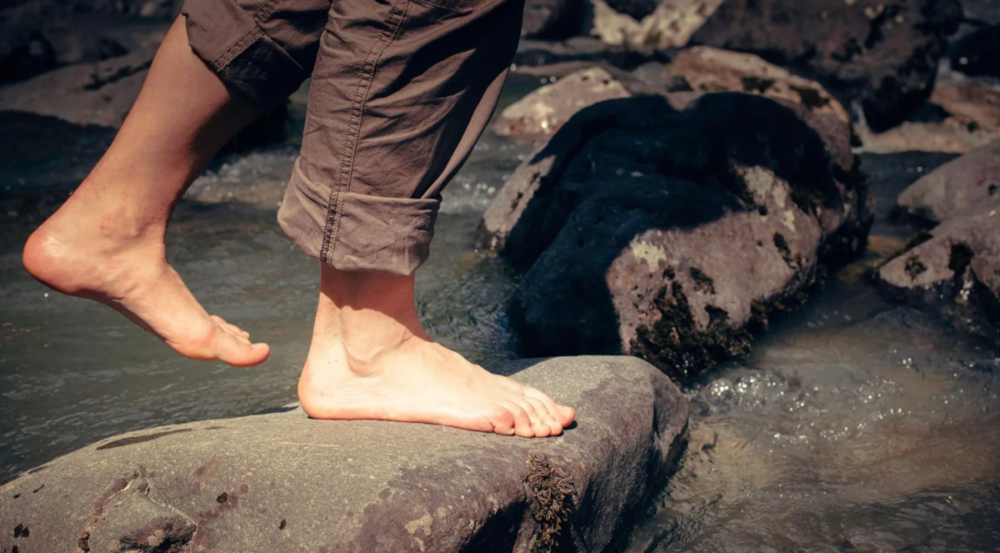 人類祖先走在濕滑岩石上或覓食貝類時,泡水引起的褶皺或許會增加抓地力。© Alamy