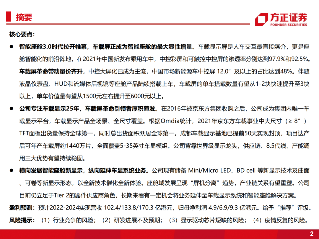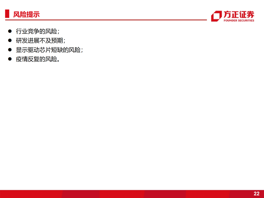 風險提示:(1)行業競爭的風險;(2)研發進展不及預期;(3)顯示驅動芯片短缺的風險;(4)疫情反覆的風險