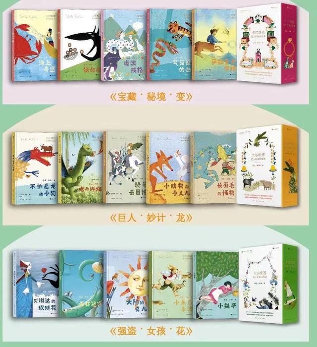 這3套書從200個故事中選擇了60余篇,分為三輯,每一輯有5冊。邀請了13位插畫大師,繪製了1400多幅插畫。相比格林童話,卡爾維諾的意大利童話少了幾分晦暗和陰森,洋溢着朴素的鄉野氣息,也帶有卡爾維諾的個人風格。