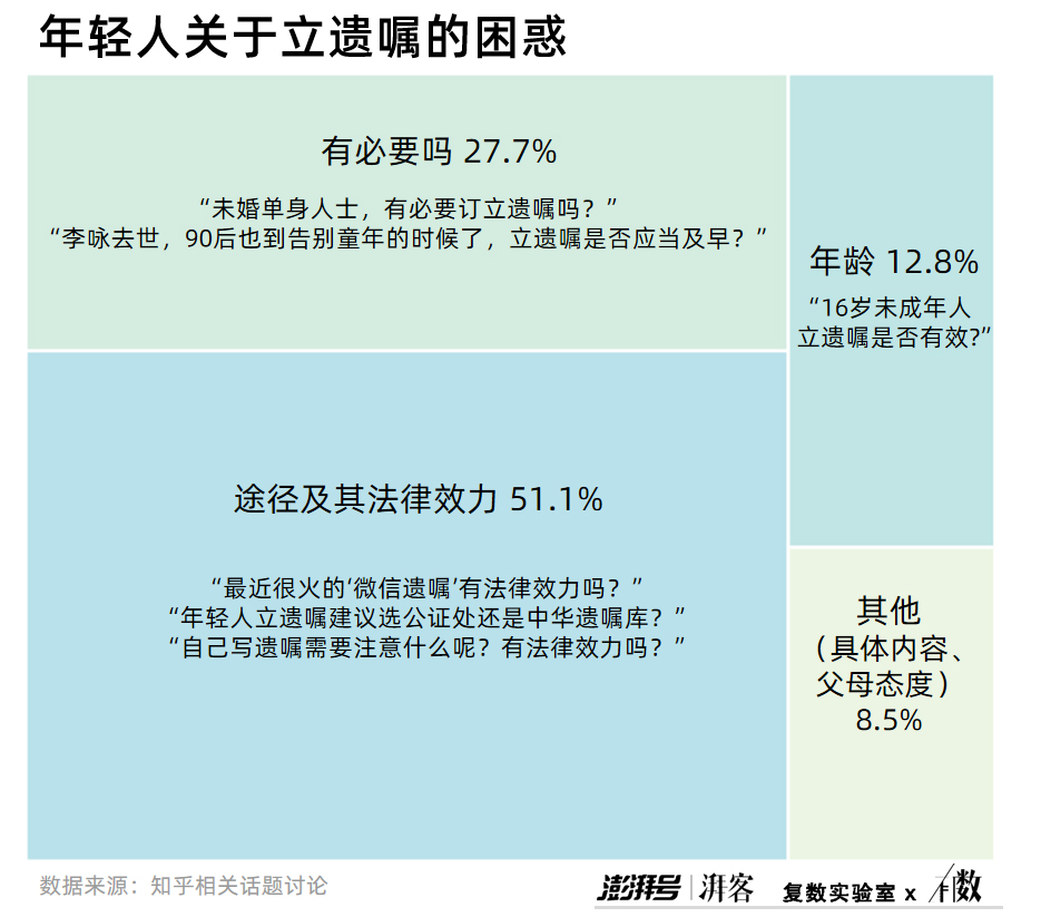 除此之外,年輕人提早立好遺囑,也是其法律意識增強的表現。在目睹太多因遺產紛爭所致的親人反目成仇的案例之后,這一代年輕人表示要「提前安排好財產分配,保障自己至親的利益」、「避免日后的家庭糾紛」。