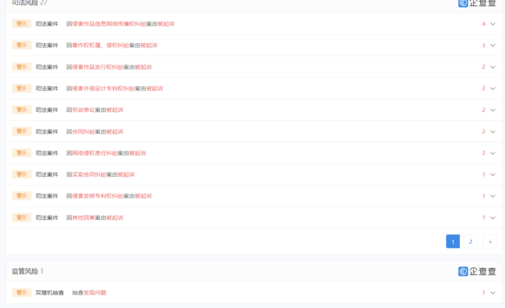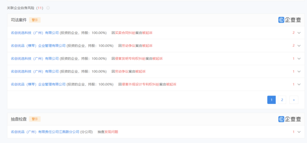 企查查數據顯示,名創優品關聯公司名創優品(廣州)有限責任公司歷史風險23個,有因未按時履行法律義務被法院強制執行的,有因勞動爭議被起訴獲得部分支持的,還有關聯司法案件、抽查發現問題等等。