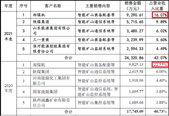 對於北路智控這類項目型公司來説,下游客户是最重要的,也就是説獲客能力很關鍵。其客户主要分兩類,一類是煤炭企業這種終端客户,另一類是鄭煤機和三一重裝這類煤礦機械設備企業。只是鄭煤機不僅是公司的股東還是大客户,這種 「依賴性」則對公司的發展可謂「有利有弊」。