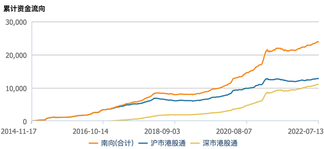 很顯然,市場資金已經嗅到了港股的機會。2022 年開年以來,滬深港通南向資金日均淨流入達18億元,在102個交易日里有81個交易日實現了淨流入,2022年年內,南下資金累計淨買入已超過2000億元。