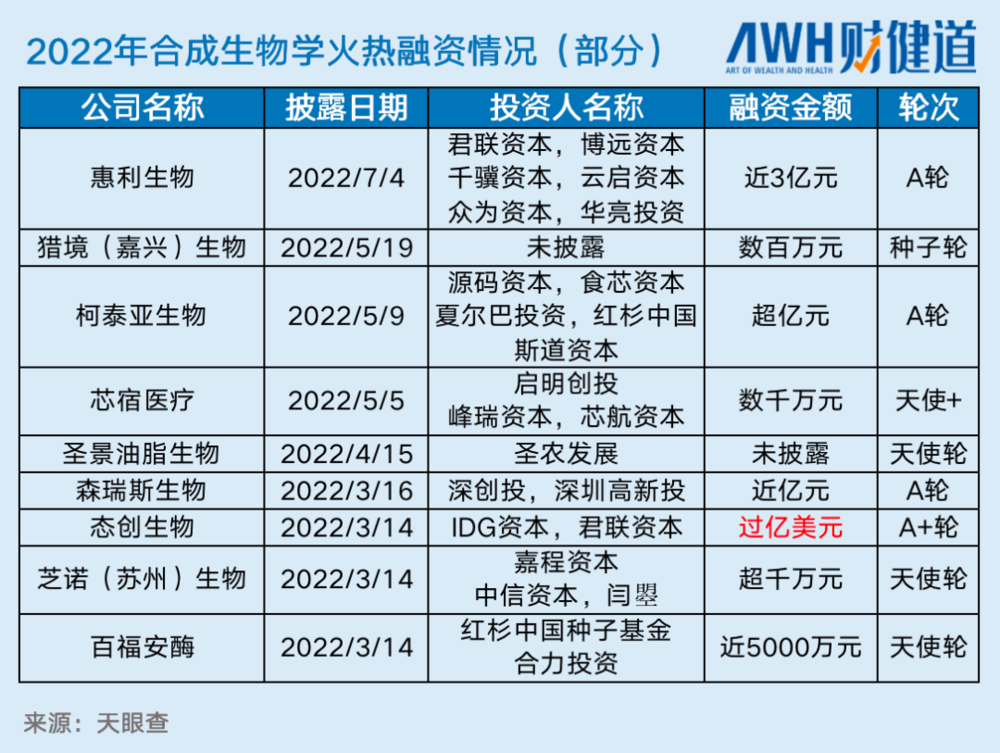 不僅如此,高瓴、紅杉、經緯等明星機構紛紛入局,一時間創投圈侃侃而談的新話題變成了合成生物。