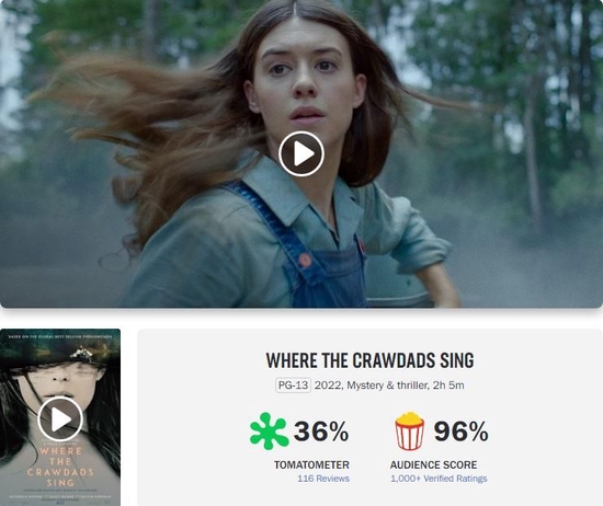 對這部小説充滿感情的忠實讀者(首輪觀眾的抽樣調查結果顯示,有高達四分之三,都是女性),顯然是沒將這樣的負面新聞放在心上,而《蝲蛄吟唱的地方》的票房成功,也再次證明了優質文學IP對於好萊塢一直以來的強大吸引力。