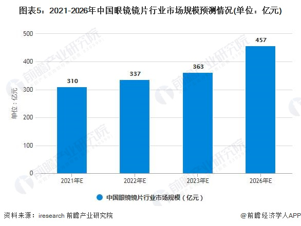 根據《中國眼鏡片行業白皮書》顯示, 中國85%的鏡片市場被蔡司等四大國外品牌瓜分 。這個市場有多大呢?調研機構預測,中國的眼鏡片行業到2026年將達到457億元。