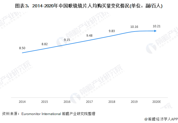 導致的結果就是,我國人均購買的鏡片數量在逐年增加。