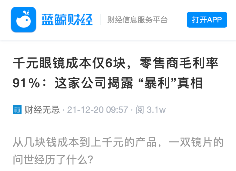而眼鏡片行業,一直以來都被認為是暴利行業。