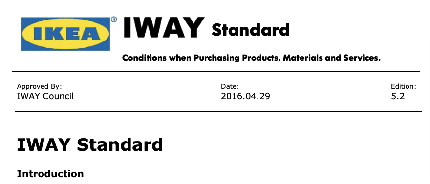 儘管如此,想成為宜家的供應商,不僅要通過宜家一整套項目繁多的品質管控和評判標準,這在宜家內部被稱為「IWAY」行爲準則。