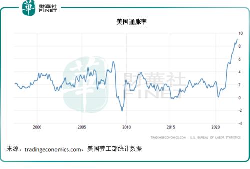 2022年6月份美國通脹率上升至9.1%,這是1981年11月以來的最高水平,其中能源價格的貢獻居功至偉。在汽油大漲59.9%、燃料油大漲98.5%、電價上漲13.7%以及天然氣大漲38.4%的帶動下,美國的能源價格上漲41.6%,是1980年4月以來的最大漲幅。