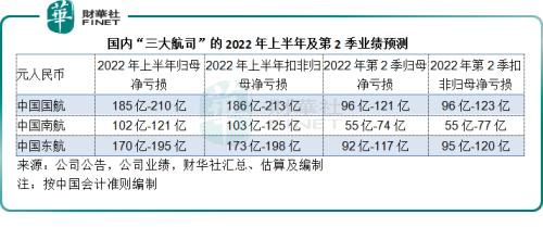 中國南航預計其2022年上半年歸母淨虧損介於102億元到121億元之間,相較去年同期為淨虧損46.88億元;扣非歸母淨虧損為103億元到125億元之間,相較去年同期為淨虧損48億元。