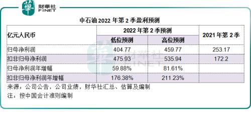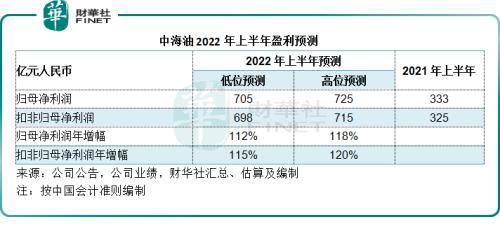 同樣,今年4月回A上市的中海油也發佈盈利預喜,預計在國際油價大幅攀升的推動下,其上半年盈利水平將大幅提高。其2022年上半年歸母淨利潤或為705億元到725億元,與上年同期相比將增加372億元到392億元,同比增加約112%到118%;扣非歸母淨利潤或為698億元到715億元,同比增加373億元到390億元(或115%到120%)。
