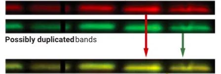 阿什為自證清白在PubPeer發表的迴應文章中提供了原始、未發表圖片,其中雖然沒有明顯的數字切割痕跡,卻坐實了一些「指控」:多條條帶是從鄰近區域複製粘貼來的。