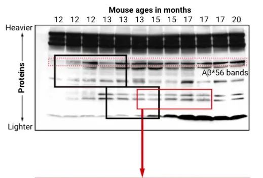 根據這篇論文所寫,阿什實驗室發現了一種Aβ亞型,他們將其命名為「Aβ*56」。這種物質在老年鼠體內較多,注射到幼鼠體內,導致這些老鼠回憶簡單信息的能力下降,這也證明了該物質會導致實驗鼠痴呆。