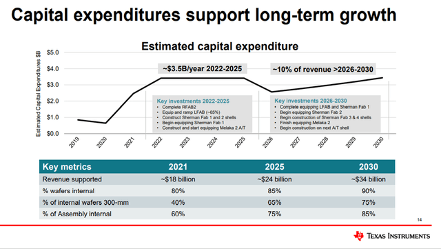 德州儀器公司的利潤率在同行業中是最高的,管理層繼續投資於他們的低成本製造優勢,換句話説,投資於公司的長期利益。就在今年4月,管理層宣佈了即將到來的第二個3毫米模擬鑄造廠的另一個擴張,最初的投資是31億美元,預計將推動增長到2022-2025年,因為預計從今年年底開始產出。