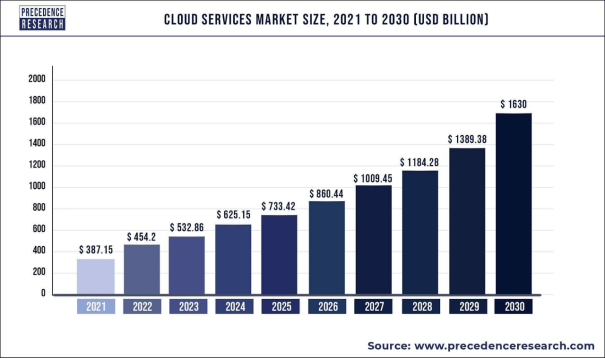 現在來看,Grandview Research預測,從2022年到2030年,全球雲市場的年複合增長率為15.7%。這將使該市場在這段時間內增長272%。優先研究公司的一份報告支持了這一觀點。該報告預測,到2030年,全球雲服務市場將超過1.6萬億美元,年複合增長率為17.32%。