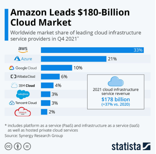 事實上,只要看看谷歌Cloud就知道,規模在這個領域很重要。儘管雲計算是雲市場的第三大玩家,但它在過去四年中損失了176億美元。這證明亞馬遜在雲基礎設施上的巨大投資也提供了一條寬廣的護城河,以抵禦競爭對手。