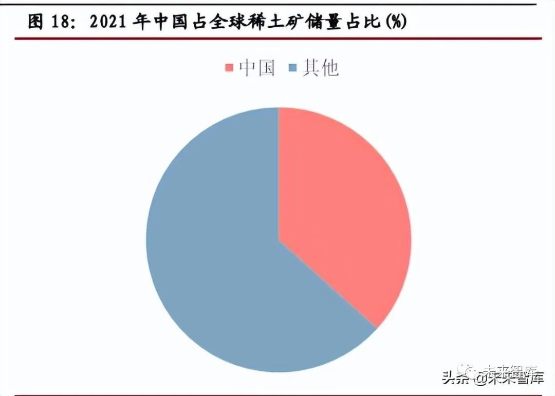 稀土儲量上,我國遠超其他國家。據美國地質調查局(USGS)數據顯示,全球 稀土儲量由 2015 年的 1.3 億噸下降后一直維持在 1.2 億噸,2021 年我國的稀土 儲量為 4400 萬噸佔比 36.67%,常年開採下佔比有所降低但仍遠超其他國家;其 次為越南佔比 18.33%、巴西儲量佔比 17.5%、俄羅斯儲量佔比 17.5%。全球前 四國稀土儲量之和佔比高達 90.00%。