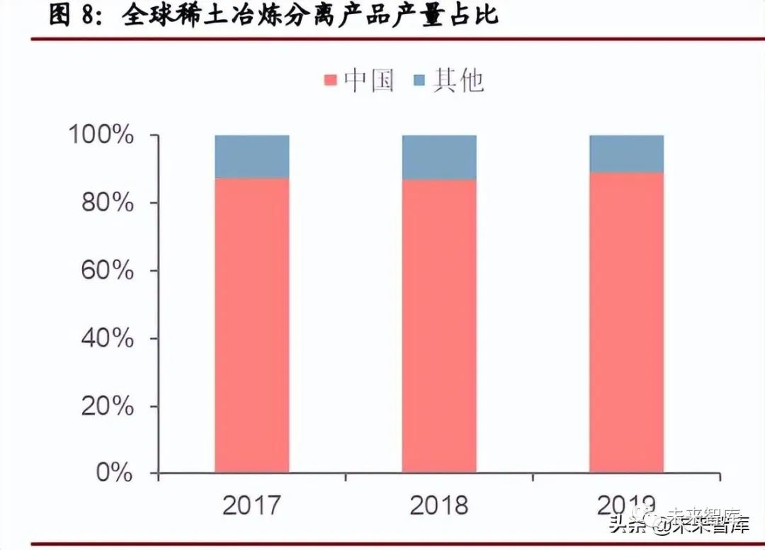 佈局全產業鏈,資源突出享受低成本優勢。公司佈局稀土產業鏈上中下游,產品 包含稀土原料產品、稀土功能材料產品及部分稀土終端應用產品,構建了全產業 鏈競爭優勢。公司控股股東包鋼集團擁有白雲鄂博稀土礦獨家開採權,向北方稀 土排他性且低於市場價供應稀土精礦。其中白雲鄂博礦是世界上儲量和產量第一 的稀土礦,同時尾礦儲量豐富品位較高與鐵共生,稀土作為生產鐵礦的副產品不 計算開採和初選成本。