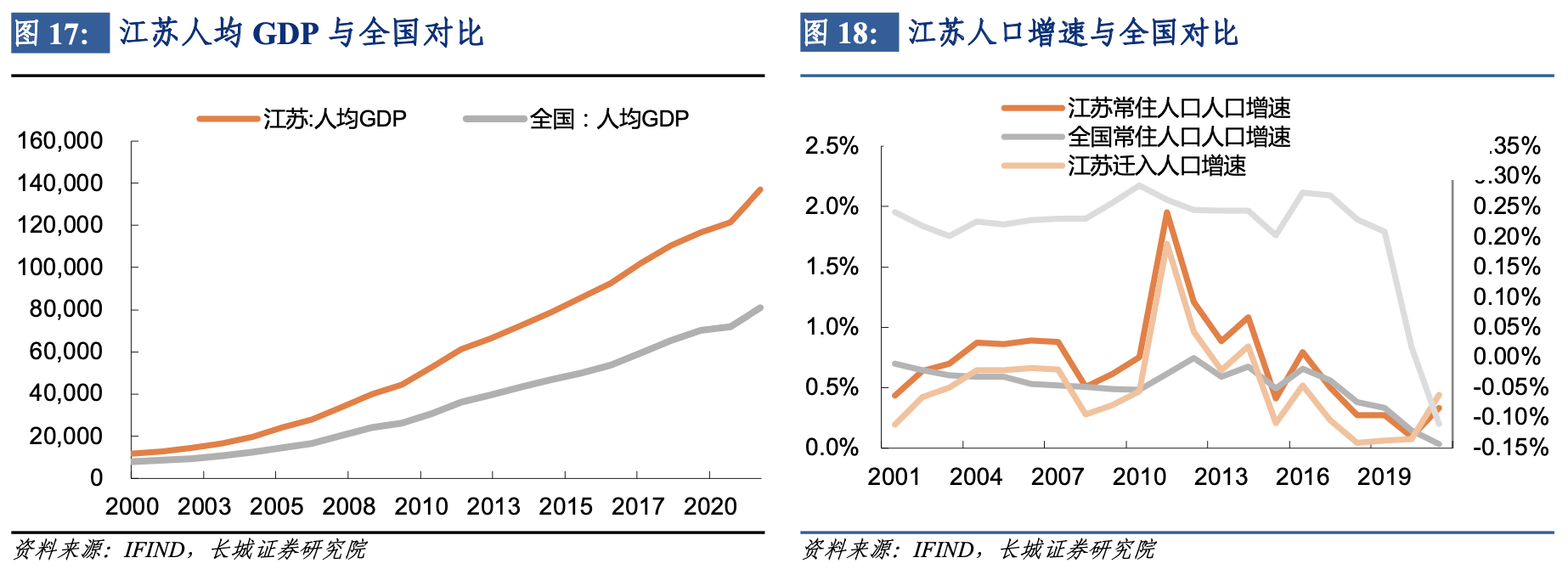 江蘇省是中國經濟發展的「績優生」,人均GDP多年位居各省份第一,同時人口持續淨流入,財政多年淨上繳,多項經濟指標領跑全國。得益於其高瞻遠矚的產業政策和得天獨厚的地理位置,江蘇省創造了名列前茅的工業發展規模與出口份額,產業轉型升級卓有成效。但同時我們也看到,江蘇省房地產依賴度較高,人口老齡化問題較嚴重,土地收入佔比較高,城投債務負擔較重。