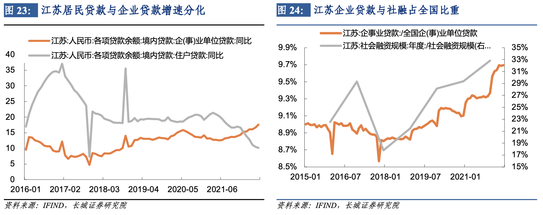 社融方面的數據也體現出江蘇企業端融資的勢頭。2018年以來江蘇省社融規模佔全國比重持續上升,江蘇企事業單位貸款勢頭也較為強勁,佔全國比重一路上升。一方面有賴於江蘇省製造業發展迅速,企業貸款增速大幅上升;另一方面註冊制改革加快,推動企業快速成長,江蘇省也抓住機遇,大力發展企業融資。