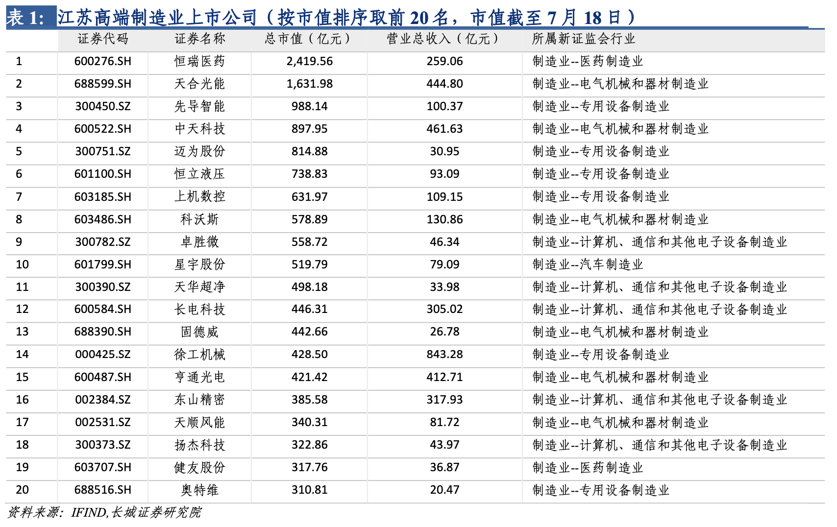 江蘇省高端製造業發達,坐擁一大批卓越的製造業企業,其中包含多家市值超千億或收入超百億的「超級公司」如恆瑞醫藥、天合光能、亨通光電、徐工機械、威孚高科等,涵蓋醫藥製造、電器機械、計算機通信等多個行業,為江蘇高端製造業的高速發展提供動力。