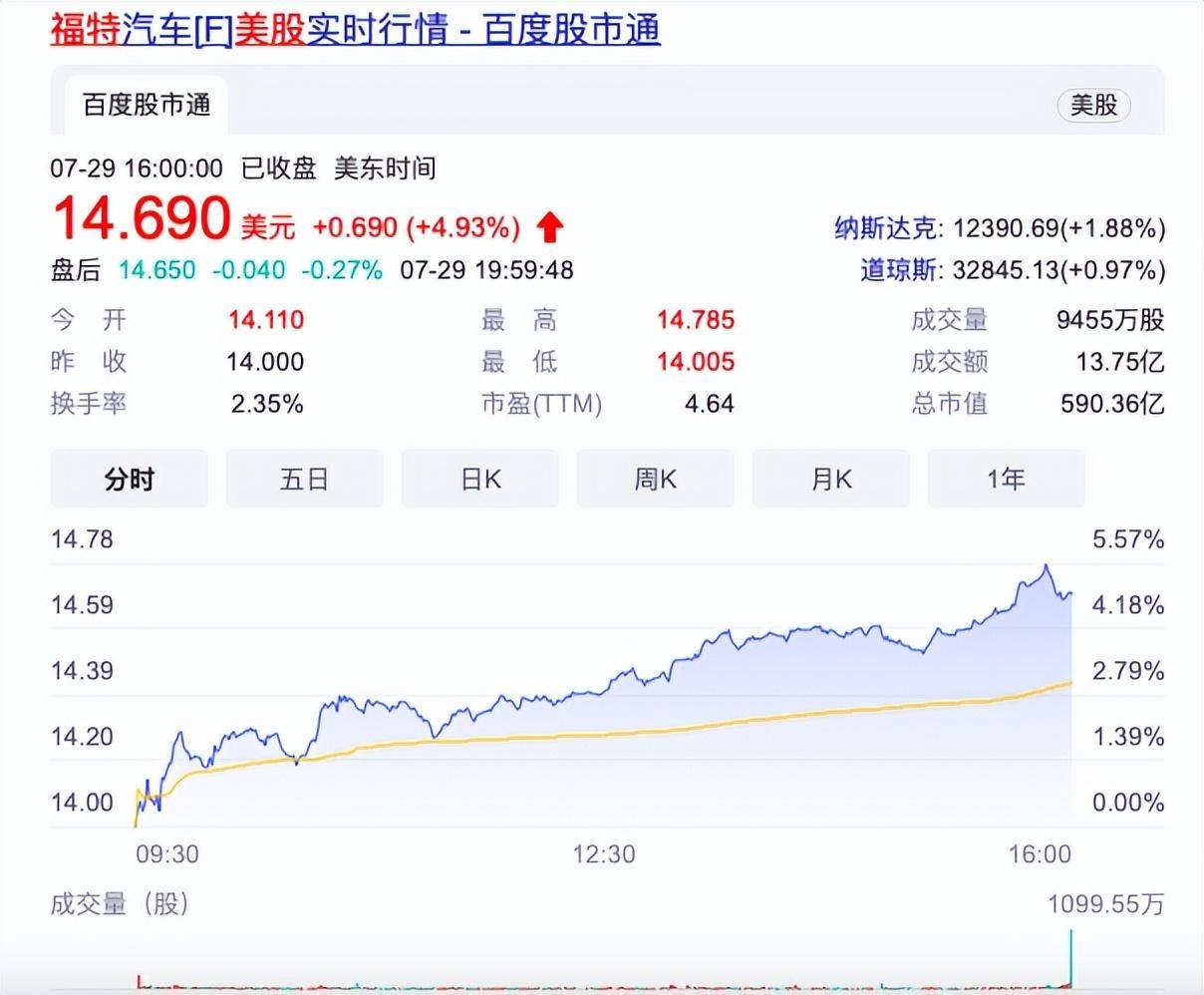 截至美東時間7月29日的最新收盤日,特斯拉報收891.45美元,最新總市值為9236億美元。福特和通用分別報收14.690美元和3.81美元,最新總市值分別590.36億美元為49.14億美元。