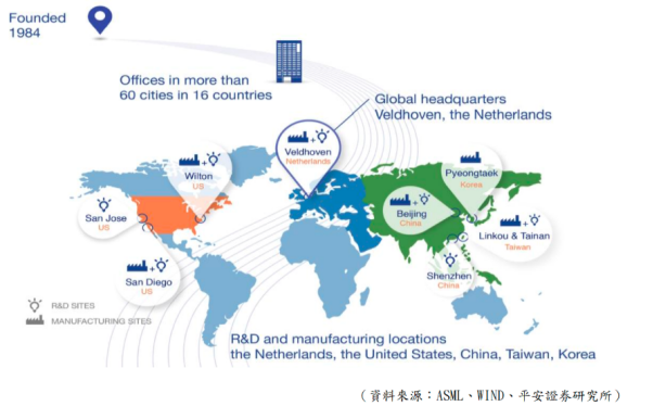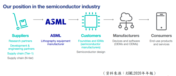 ASML的產品可説被所有主要半導體制造商使用,包括英特爾、三星、臺積電等,ASML在全球16個國家擁有60多個分支機構。