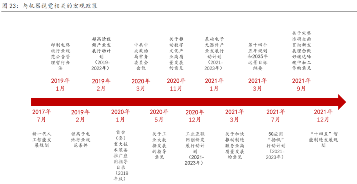 據西部證券梳理,近年來,與機器視覺相關的宏觀政策陸續出臺。