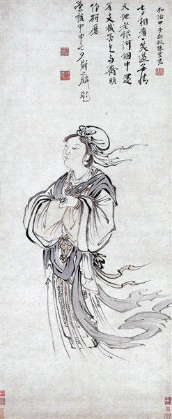 牛女皆為天上神仙的設定,數千年來在文人的歌詠里並無太大變化。古人相信天上的銀河與地上的大海相通,為人間和天上提供了一條可能的通路,《博物志》中的「浮槎」故事,令古人感覺牛郎織女並不遙遠:「近世有人居海渚者,每年八月有浮槎去來,不失期。人有奇志,立飛閣於槎上,多齎糧,乘槎而去……去十余月,奄至一處,有城郭狀,屋舍甚嚴。遙望宮中有織婦,見一丈夫牽牛渚次飲之。」此人回去后訪問蜀地嚴君平,得知自己居然到了天界,見到了牛郎星和織女星,而人間在他遇到牛郎星的那一天,觀測到了「客星犯牽牛宿」,后來「乘槎客」就成了遊仙之人的代稱。《荊楚歲時記》里,這個故事的主角成了西漢名臣張騫:「張騫尋河源,得一石,示東方朔。朔曰:此是天上織女支機石。」《五國故事》寫道:「南唐后主李煜每七夕延巧,必命紅白羅百匹以豎為日宮天河之狀,一夕而罷。」明清時期,廣州人過七夕時「多為素馨花艇,遊泛海珠及西濠香浦,以象星槎」,用掛滿小舟的素馨花串象徵天上的星辰,人們泛舟珠江之上,儼然行於銀河之中。