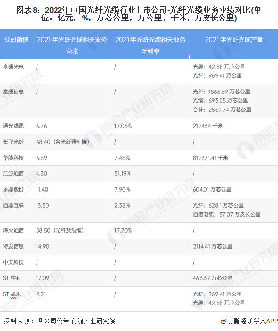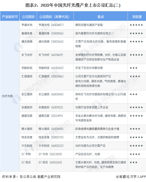 1、光纖光纜產業上市公司匯總