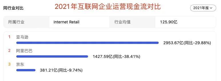 2021 年阿里的財報顯示,阿里巴巴的運營現金流只有1400 億。