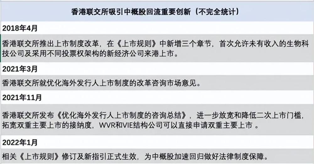 今年的 1 月 1 日,港交所啟用新規:如果一家中概股公司從美國退市,它可以在港交所沿用美股上市時的多項治理架構,以降低上市門檻。